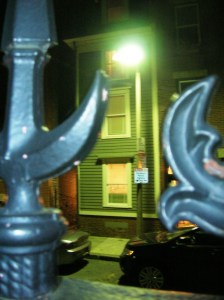 וזה פשוט הבית הכי צר בבוסטון, כפי שהוא נראה מתוך בית-הקברות