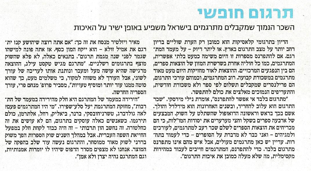 מצב המתרגמים בישראל – טלי חרותי-סובר (דה מרקר)