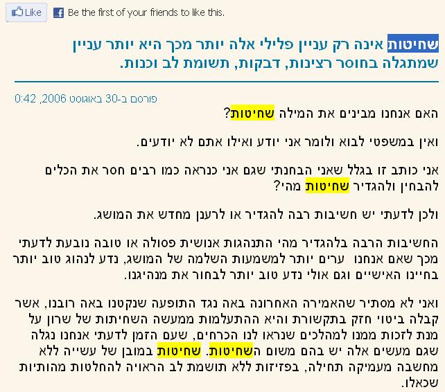 את לא חושבת שהניסון ללמד את הציבור מה ההבדל בין שחיטות לשחיתות הוא מלחמה בתחנות רוח 🙂