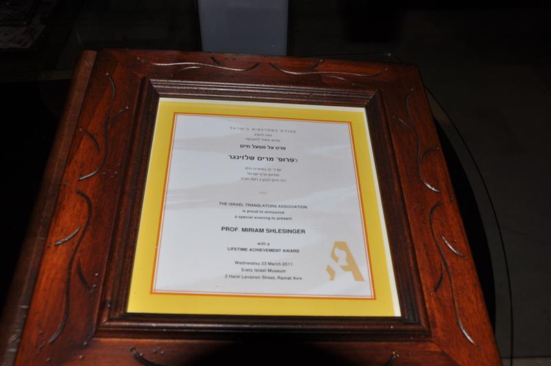 ביום רביעי האחרון התכנסו מאות מרצים, מתרגמים, בני משפחה, חברים וסטודנטים לשעבר כדי לחלוק כבוד לפרופ' מרים שלזינגר. את האירוע יזמה שרה ירקוני, חברת ועד בהווה ויו"ר האגודה בדימוס, ובתכנונו סייעו לה גם אלן קליימן ופסקל אמוזיג-בוקספן, יו"ר אגודת המתרגמים בהווה. הרעיון היה מצוין והביצוע היה נהדר. לא בכל יום מתקיים אירוע נוצץ שכזה בעולם התרגום בארצנו הקטנטונת.