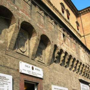 היא שוכנת במרכז העיר, במרחק צעדים מהדוּאוֹמוֹ (קתדרלה) הנפלאה של העיר, בבניין גותי שהיה בעבר הבורסה של בולוניה, ומכאן גם שמה. הבניין נותר בשלמותו מבחוץ, אבל שופץ כליל מבפנים. הספרייה נפתחה ב-2001 ומעל שלוש קומותיה מתנוססת תקרה יפהפייה, אבל גולת הכותרת היא ללא ספק רצפת הזכוכית. מתחת לרצפה תוכלו לראות שרידים עתיקים שנחשפו בחפירות ארכיאולוגיות – הבזיליקה (בית-המשפט) של העיר הרומית, ואפילו שרידי יישוב מהתקופה האטרוסקית. מסתבר שאפשר לחדש ולבנות גם בלי להרוס את הישן ולהשמיד כל זכר לעבר.
