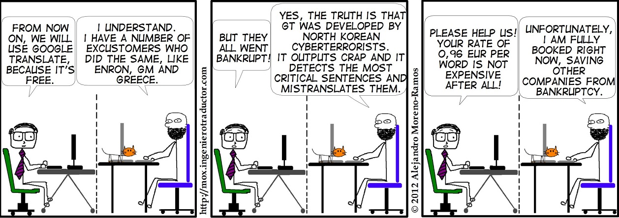 * פוסט קצר שקראתי ממש הבוקר באתר של RPSI, ארגון של מתורגמנים מורשים. מסתבר שלפני פחות משנה נכלא ונקנס באנגליה אדם שהתחזה למתורגמן מוסמך, וכיום הם מלינים על זה שהמצב השתנה לרעה בשנה האחרונה. אין לי מושג מה קרה שם בשנה האחרונה, אבל הלוואי עלינו שהיו שולחים לכלא מתחזים שמתרגמים סימולטנית בבתי משפט ובבתי חולים, בלי שהוסמכו לכך.